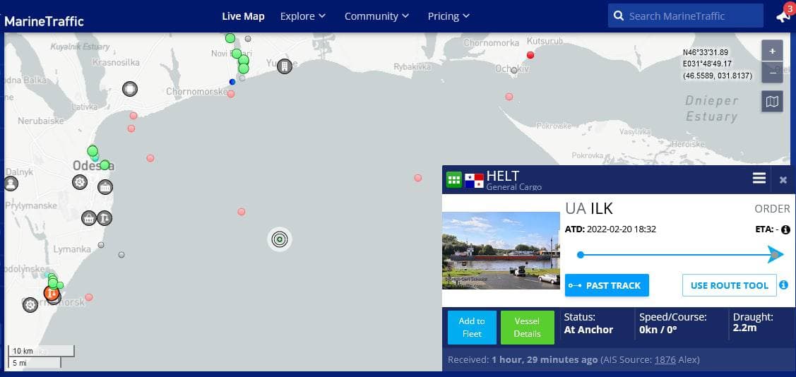 "Судно дало сигнал МЕЙДЕЙ на 16 канале, находилось на связи со СКЦ/МПРС. Позиция 46’22 n 31’04 e, в 20 милях (32 км. - Ред.) от Одессы, УКВ не слышно. Последний доклад с судна – крен 70 градусов, садимся на плоты" говорится в сообщении Администрации морских портов Украины.