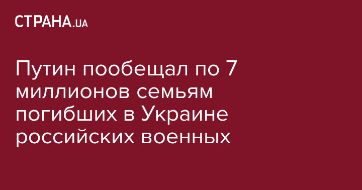 Путин пообещал по 7 миллионов семьям погибших в Украине российских военных