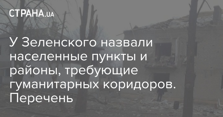 Населенные пункты в районах боевых действий, требующие создания гуманитарных коридоров, расположены в таких областях:
