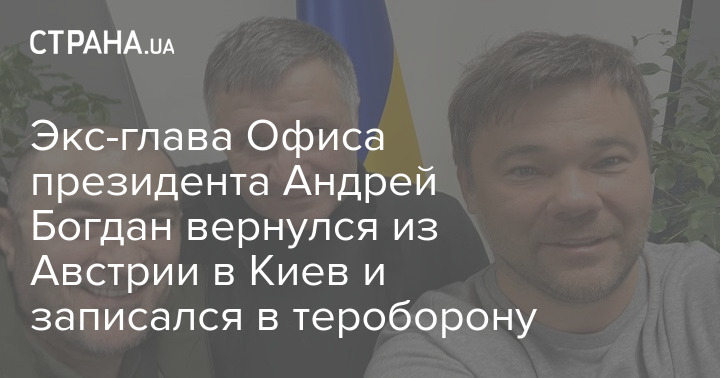 Экс-глава Офиса президента Андрей Богдан вернулся из Австрии в Киев и записался в тероборону