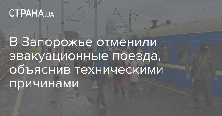 "По техническим причинам отправление эвакуационных поездов из Запорожья сегодня отменяется", говорится в сообщении.
