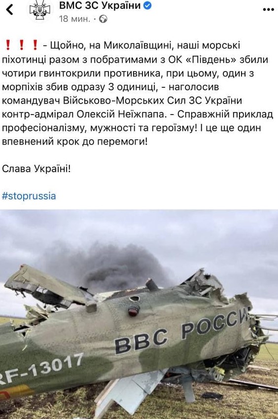 11:00 Сообщают, что российский десант высадился в селе Ястребиное в Николаевской области близ Вознесенска (где идут бои).