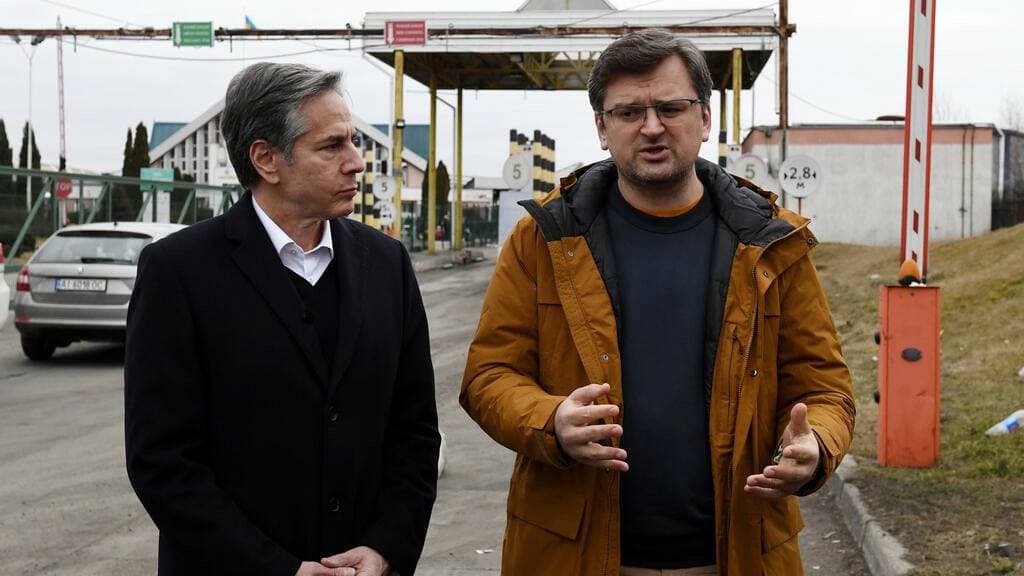 Позже, находясь на границе, Блинкен ненадолго ступил на украинскую землю, чтобы встретиться с министром иностранных дел Дмитрием Кулебой, который предсказал поражение России, но призвал к дополнительной военной помощи, чтобы снизить цену жизней, которая, по его словам, потребуется для победы.