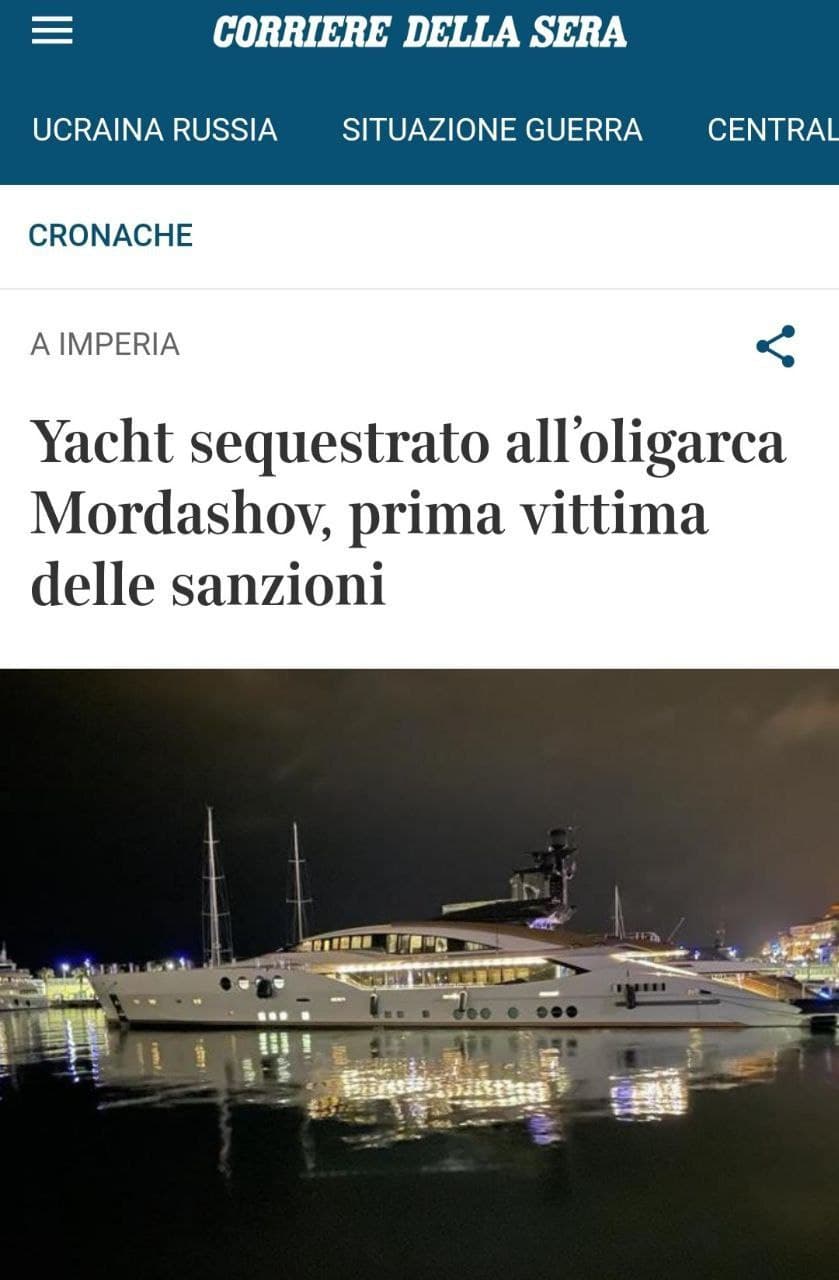 03:48 Итальянские СМИ пишут, что конфискованы яхты российских олигархов Алексея Мордашова и Геннадия Тимченко.