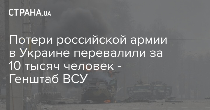 По состоянию на субботу, 5 марта, в ходе боевых действий в Украине потери среди личного состава российских военнослужащих перевалили за 10 тысяч человек. Об этом сообщает Генеральный штаб ВСУ.