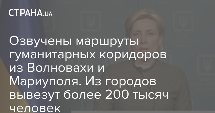 Вице-премьер-министр – министр по вопросам реинтеграции временно оккупированных территорий Украины Ирина Верещук рассказала об организованных сегодня гуманитарных коридорах в Мариуполе и Волновахе.