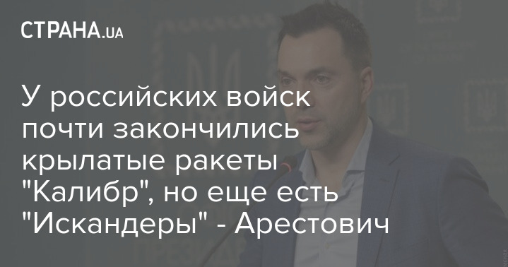Российские оккупанты использовали в Украине 90% своих крылатых ракет "Калибр", однако у войск противника еще достаточно "Искандеров". Их могут запускать с территории Беларуси, заявил советник главы ОП Алексей Арестович в эфире канала "Украина 24".