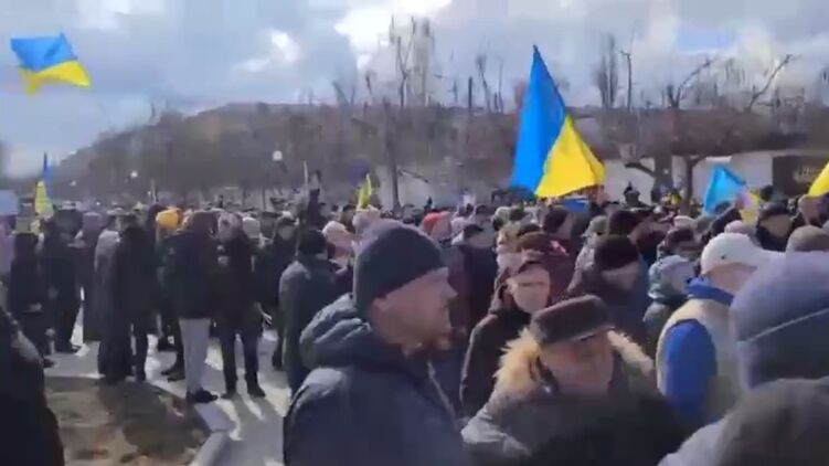 Жители оккупированной российскими войсками Новой Каховки вышли на массовый митинг против вторжения россиян.