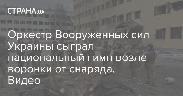 Оркестр Вооруженных сил Украины сыграл гимн около воронки от снаряда, видео выложили в сеть. На кадрах видно, что военный оркестр выстроился вокруг большой воронки от снаряда и играет государственный гимн.