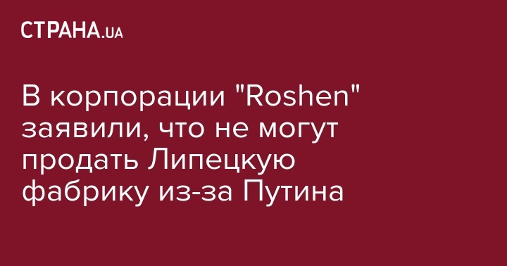 В корпорации "Roshen" заявили, что не могут продать Липецкую фабрику из-за Путина