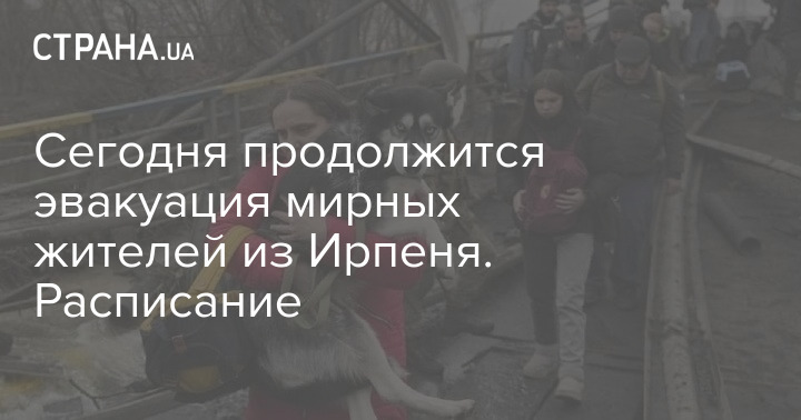Сегодня, 9 марта, эвакуация из Ирпеня продолжится. Она начнется в 10:00 и продлится до 15:00.