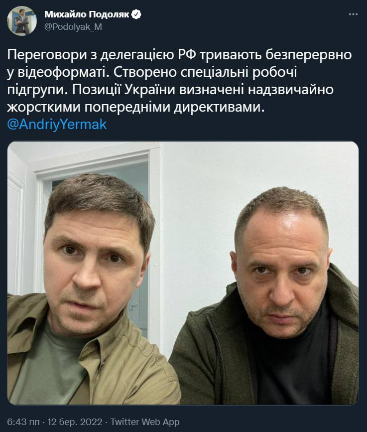 18.50 Подоляк подтвердил переговоры Украины с Россией в видеоформате. Говорит, что созданы рабочие группы.