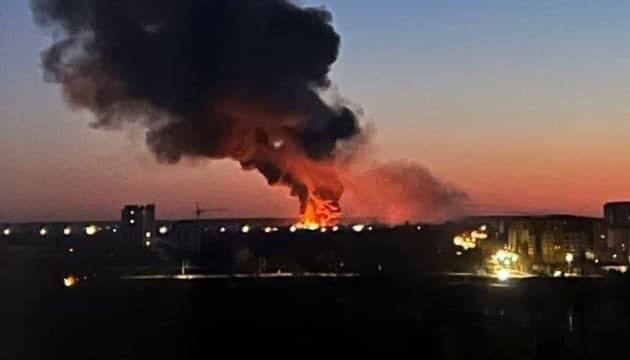 07.25 Сегодня утром в Луцке со стороны аэродрома прозвучало четыре мощных взрыва. После этого в городе возник пожар. Дым поднялся высоко над городом.