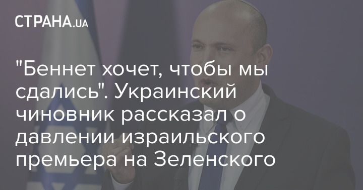 Израильская газета Хаарец со ссылкой на одного из украинских чиновников пишет, что премьер-министр Израиля Нафтали Беннет якобы лично давил на президента Украины Владимира Зеленского, чтоб тот "капитулировал" перед главой РФ Владимиром Путиным.