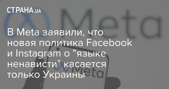 Корпорация Meta, которая ранее в некоторых странах одобрила пользователям Facebook и Instagram призывы к насилию против россиян и российских солдат, заявила о новой политике. Теперь "язык ненависти" будет доступен только в Украине.