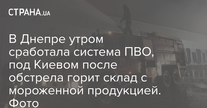 В Днепре утром сработала система ПВО, под Киевом после обстрела горит склад с мороженной продукцией. Фото