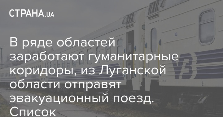 В ряде областей заработают гуманитарные коридоры, из Луганской области отправят эвакуационный поезд. Список