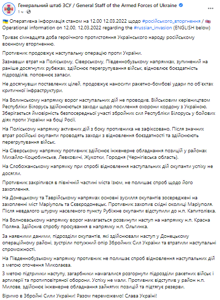 Ранее мы подробно рассказывали о том, что происходило в Украине 11 марта, на шестнадцатый день войны.