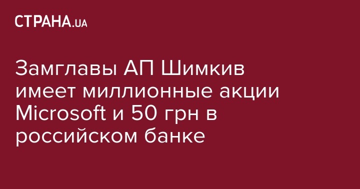 Замглавы АП Шимкив имеет миллионные акции Microsoft и 50 грн в российском банке