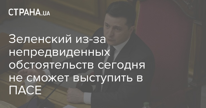 Зеленский из-за непредвиденных обстоятельств сегодня не сможет выступить в ПАСЕ