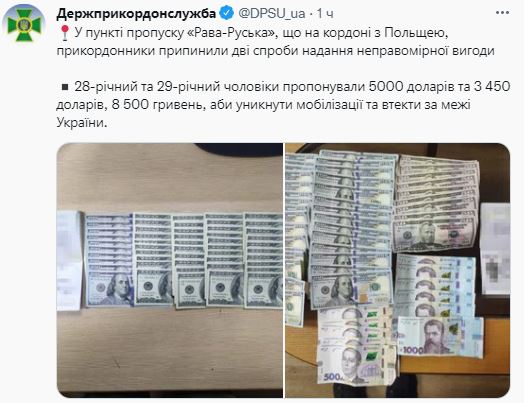 "Предлагали 5 000 долларов и 3 450 долларов, 8500 гривен, чтобы избежать мобилизации и убежать за пределы Украины"  сообщили пограничники.