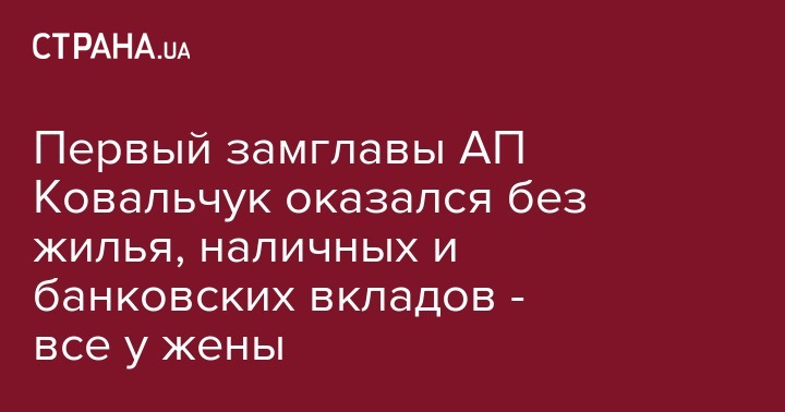 Первый замглавы АП Ковальчук оказался без жилья, наличных и банковских вкладов - все у жены