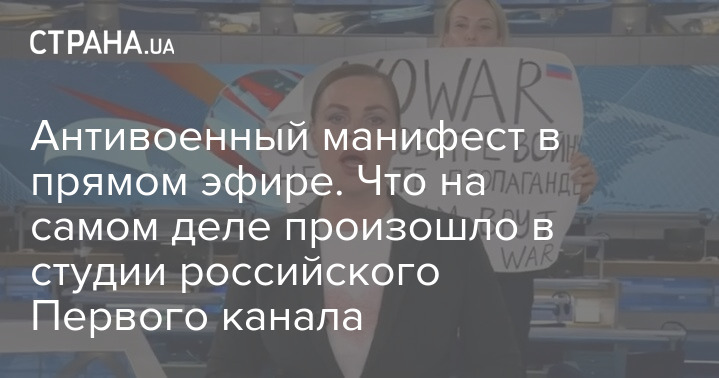 Женщина держала в руках плакат с надписью: "No war. Остановите войну. Не верьте пропаганде. Здесь вам врут. Russians against war". Овсянникова прокричала фразу: "Остановите войну! Нет войне!", после чего трансляция перешла со студии на другой сюжет.