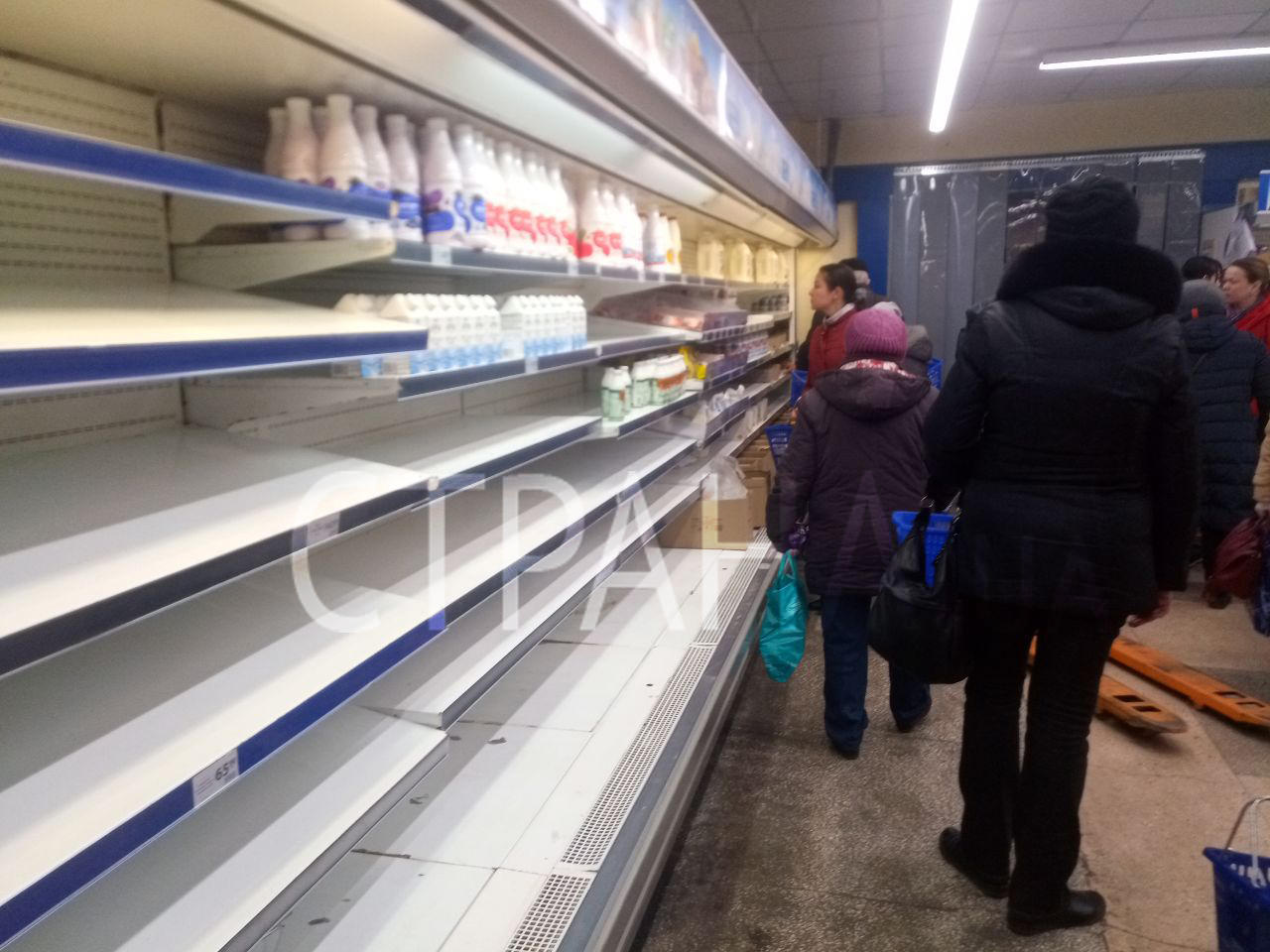 Молочных продуктов маловато, нет свежего молока, например. Зато есть несколько сортов колбасы, есть замороженные куры и мясо. Картошка, морковь, лук, капуста, свекла - все из чего варят борщ, есть и в сетевых маркетах, и на прилавках уличных торговцев. С полок подчистую смели почти все крупы, кроме экзотического кус-куса, почти все консервы.