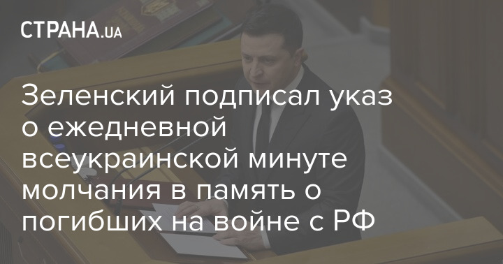 Президент Украины Владимир Зеленский подписал указ о ежедневной всеукраинской минуте молчания для почтения памяти всех военнослужащих и гражданских, кто погиб во время войны с Россией.