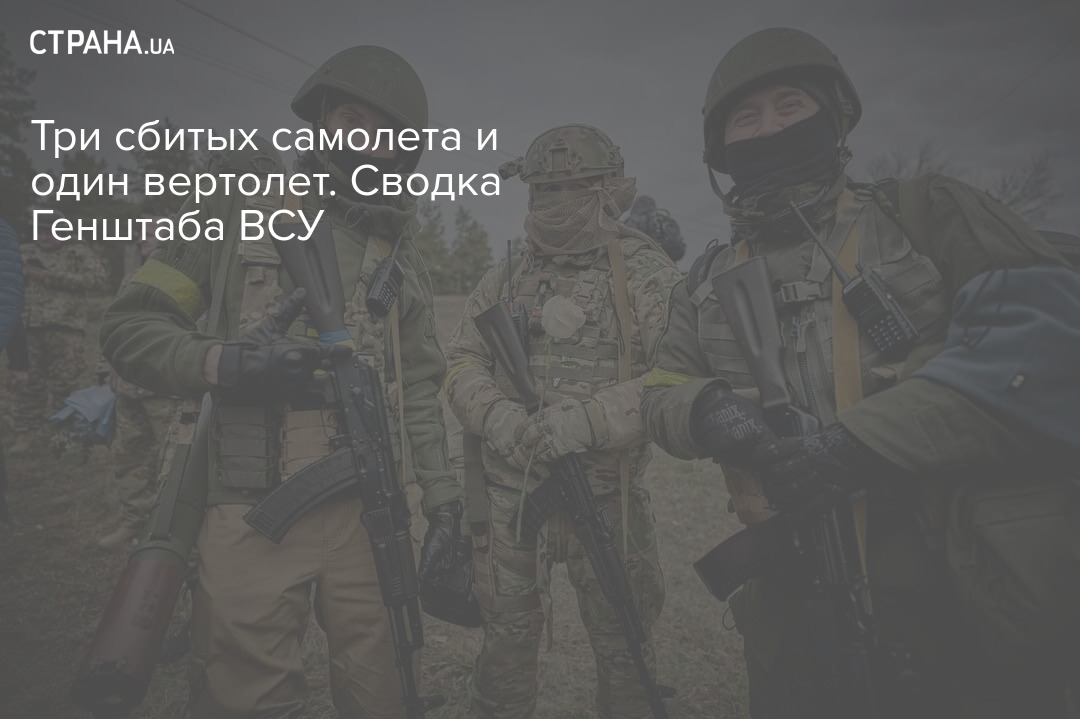 В Генеральном штабе рассказали, что с начала суток зенитные ракетные войска ВС ВСУ уничтожили два самолета Су-30СМ в Одесской области, вертолет Ка-52 вблизи Николаева и самолет Су-34 в Черниговской области.
