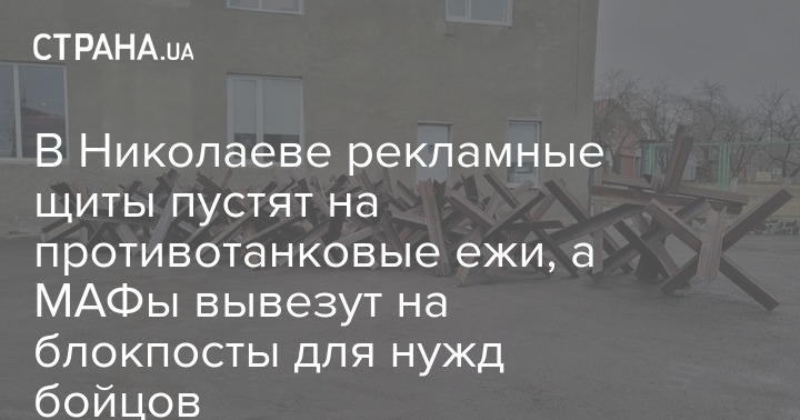 В Николаеве спилят все рекламные щиты, чтобы сделать из них противотанковые ежи. Также из города на блокпосты вывезут все МАФы, чтобы в них могли греться украинские бойцы.
