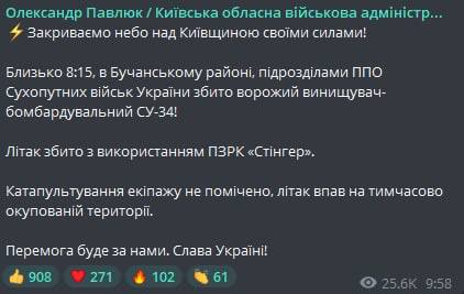 "Закрываем небо над Киевщиной своими силами", - написал Павлюк.