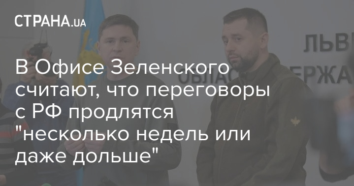 Советник главы Офиса президента Украины и член переговорной группы от Киева Михаил Подоляк заявил, что переговоры с российской стороной могут продлится несколько недель или даже дольше. Об этом он заявил в интервью Bloomberg.