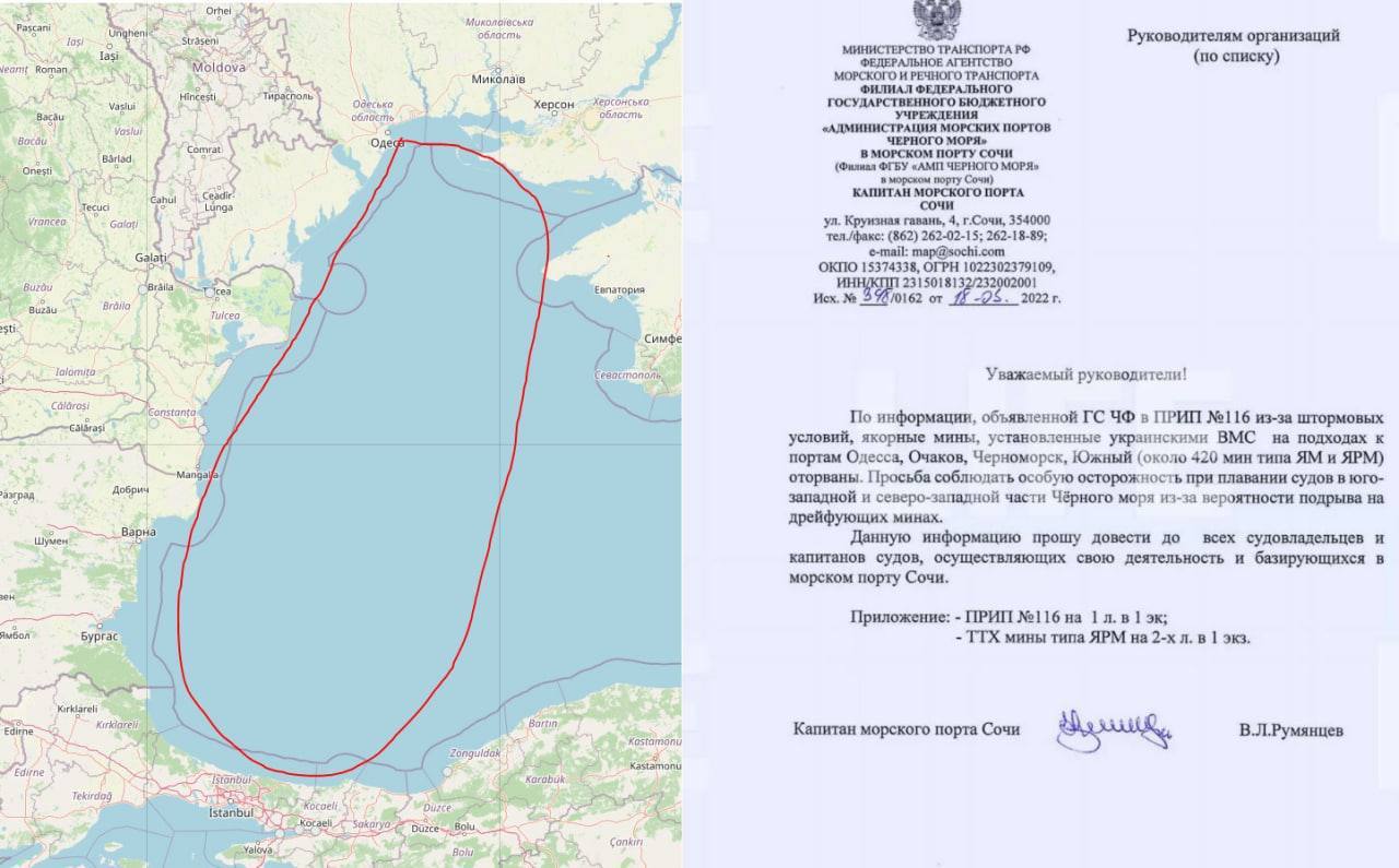 В то же время руководитель проекта "Институт Черноморских стратегических исследований" Андрей Клименко заявил, что это сама Россия заминировала путь из Босфора к Одессе, обвиняя при этом Украину.