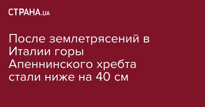 Уровень гор в центре Апеннинского хребта снизился примерно на 40 см в результате прошедших за последние два месяца землетрясений . Об этом сообщает Rai News-24.