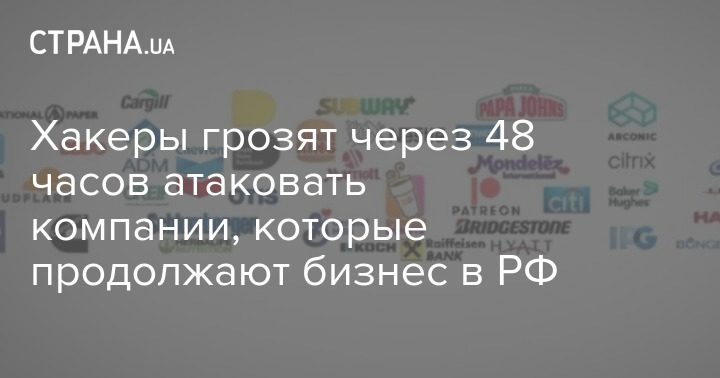 Хакерская группировка "Анонимус" пригрозила атаковать компании, которые продолжат вести бизнес в России. Об этом сообщается в микроблоге группировки в Тwitter.
