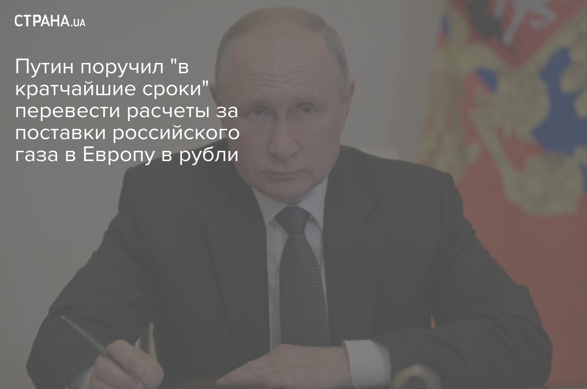 Президент Российской Федерации Владимир Путин поручил дать директиву Газпрому перевести расчёты за поставки российского газа в Европу в рубли "в кратчайшие сроки".