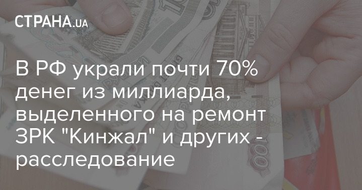 На Северном флоте России из выделенных на ремонт зенитных ракетных комплексов (ЗРК) "Кинжал", "Ураган" и "Крепость" 1 миллиарда рублей (около 10 миллионов долларов - Ред.) украли более 692 миллионов рублей (около 70 миллионов долларов - Ред.).