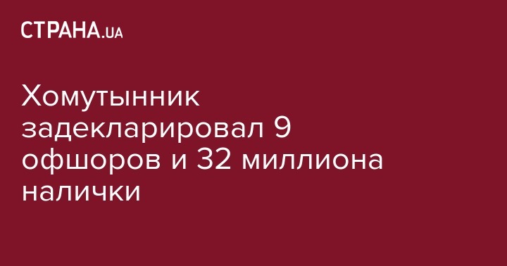 На банковских счетах депутата хранится более 40 млн в гривне, около 10 млн в долларах и 122 тысячи в евро. Наличными Хомутынник держит 32 млн 700 тыс гривен, 570 тыс долларов и 850 тыс евро. Кроме того, он осуществил около 20 членских взносов в партию "Возрождение" на сумму более чем 15,5 млн грн.