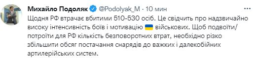 10.12 Суммарные потери противника по данным Генштаба ВСУ.