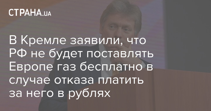 Пресс-секретарь Владимира Путина Дмитрий Песков заявил, что Россия не будет бесплатно поставлять газ в случае отказа европейцев платить за топливо в рублях.