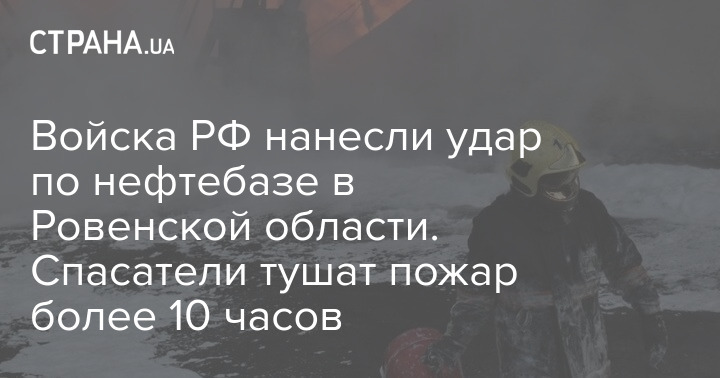 Войска РФ вечером 28 марта нанесли удар по нефтебазе в Ровенской области. Спасатели тушат огонь уже более 10 часов.