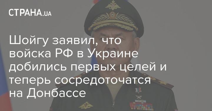 Шойгу сказал, что "основные задачи первого этапа специальной военной операции в Украине выполнены", "существенно снижен боевой потенциал ВСУ", а потому "можно сосредоточиться на главной цели" - установлении контроля над всей территорией Донецкой и Луганской областей.