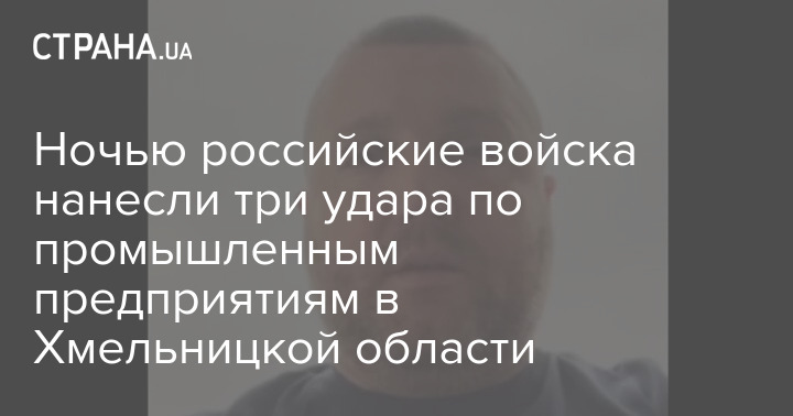 Ночью российские войска нанесли три удара по промышленным предприятиям в Хмельницкой области.