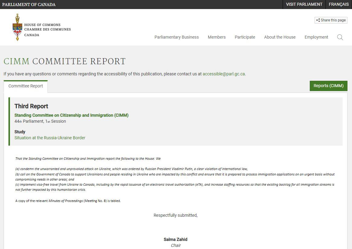 Федеральный парламент Канады поддержал отмену визового режима с Украиной. Об этом говорится в отчете Постоянного комитета парламента Канады, за который сегодня проголосовали канадские депутаты.