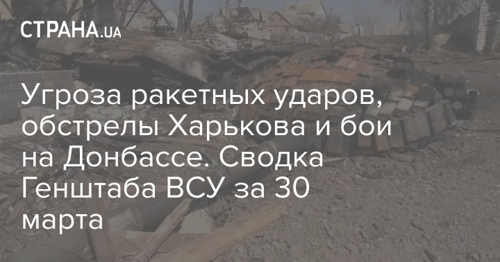 В Генштабе Вооруженных сил Украины опубликовали оперативную сводку об обстановке на фронте по состоянию на 24:00 30 марта и заявили о том, что сохраняется угроза применения ракетного вооружения по объектам оборонно-промышленного комплекса и логистической инфраструктуры нашего государства.