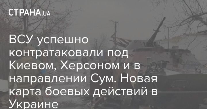 Американский Институт изучения войны опубликовал новую карту боевых действий в Украине. Сообщается, что украинские силы успешно провели локальные контратаки вокруг Киева, в направлении Сум и в Херсонской области и, вероятно, в ближайшие дни захватят новые территории, особенно к северо-западу и востоку от столицы.