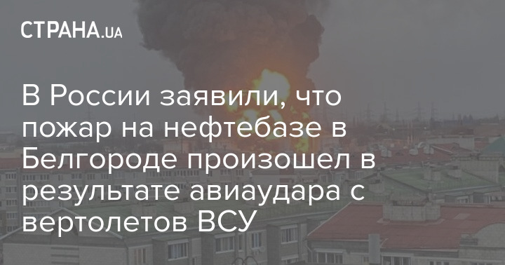 Губернатор российской Белгородской области Вячеслав Гладков заявил, что нефтебазу в Белгороде разбомбили два украинских вертолета, которые шли на низкой высоте.