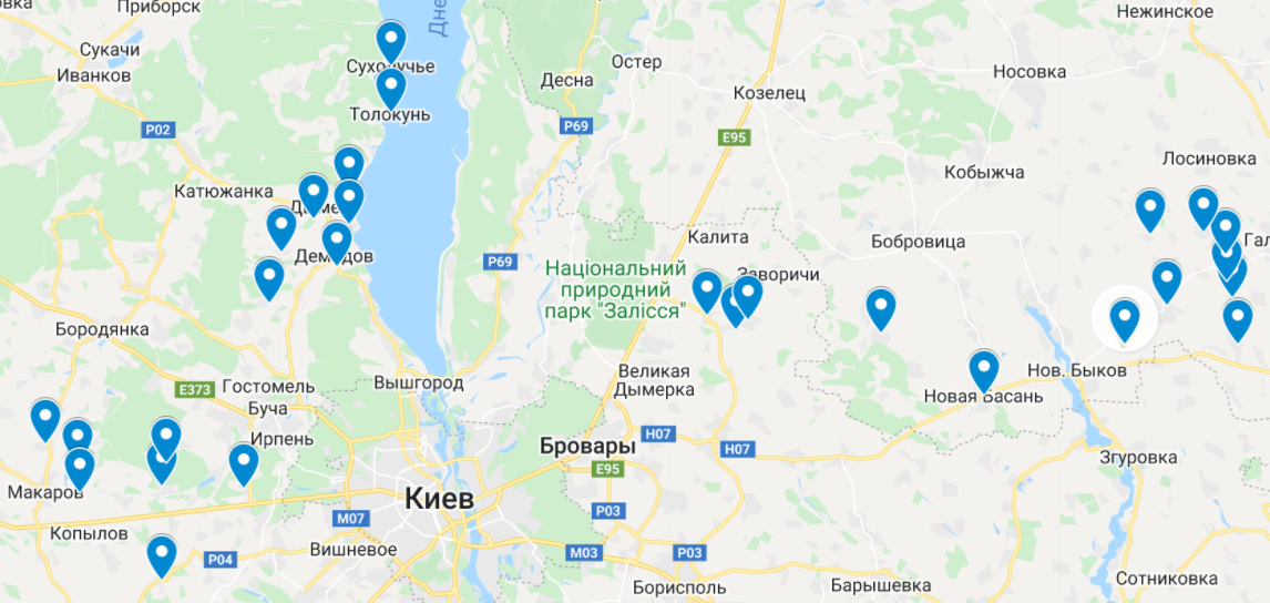 Если отдалить карту и посмотреть, какая часть Киевской и Черниговской областей оставлена российской армией, картина следующая: