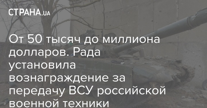 Верховная Рада приняла поступивший на рассмотрение 30 марта закон о вознаграждении за передачу ВСУ российской военной техники, которая пригодна к дальнейшему использованию.
